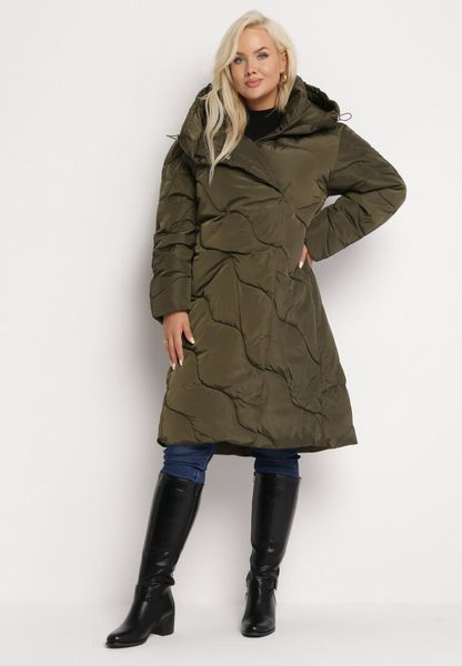Zielona Pikowana Kurtka Płaszcz za Kolano ze Ściągaczami Balley