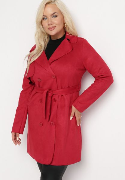Czerwony Płaszcz Zapinany na Guziki z Kieszeniami i Paskiem Antonikes