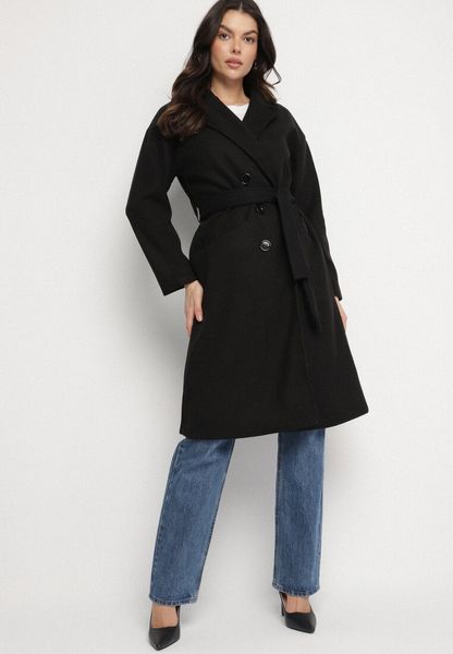 Czarny Płaszcz Dwurzędowy Wiązany Vepha
