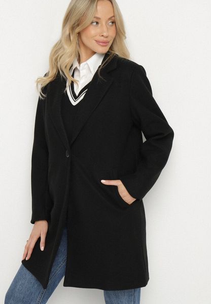 Czarny Płaszcz Jednorzędowy Sono