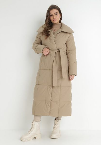 Ciemnobeżowa Kurtka Płaszcz za Kolano Pikowana Rodi