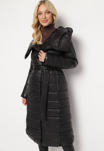 Kurtka Clerania sięgająca za kolano, zdobiona pikowaniem. Zapinana na zamek błyskawiczny ukryty pod plisą na napy. Na wysokości bioder zasuwane kieszenie. Wiązana w talii paskiem. Grubo ocieplana.
