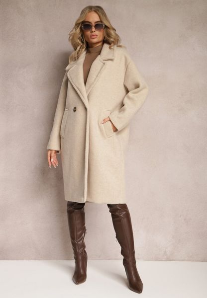 Jasnobeżowy Dwurzędowy Płaszcz Oversize z Wełną Spolete