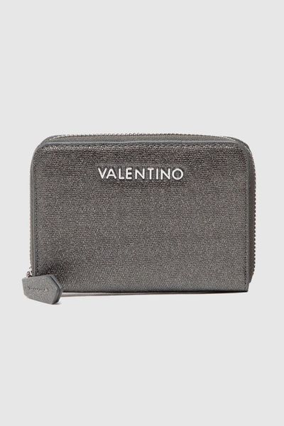 VALENTINO by MARIO VALENTINO spa Ciemnosrebrny portfel damski o strukturze skóry. W zestawie lusterko w etui.Zapakowany w pudełko firmowe.Wszystkie produkty z oferty outfit.pl są oryginalne i pochodzą bezpośrednio od producentów lub sprawdzonych dystrybutorów.