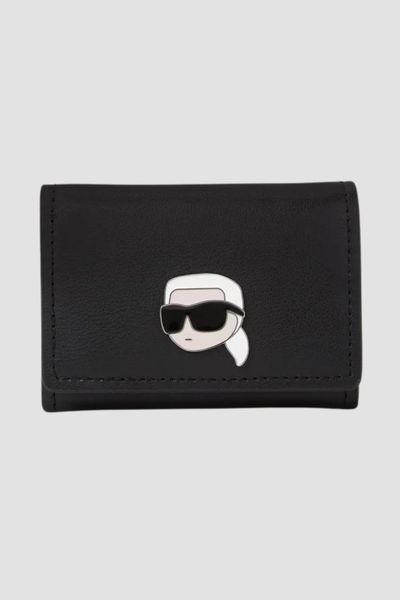 KARL LAGERFELD Czarny skórzany portfel K/ikonik 2.0