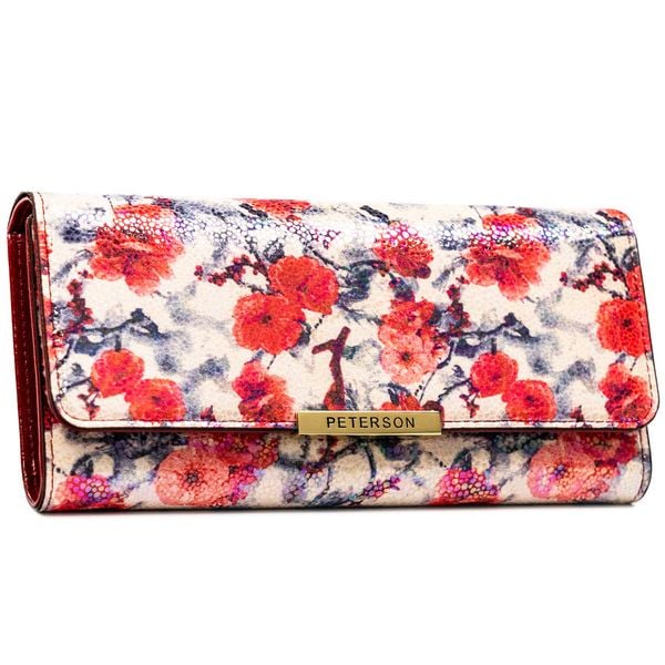 Wielokolorowy portfel damski ze skóry ekologicznej w kwiatowy wzór PTN 006-BKY Peterson