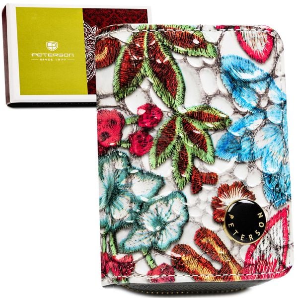 Wielokolorowy portfelik damski ze skóry naturalnej zamykany zatrzaskiem i suwakiem PTN PH33-LFL Peterson