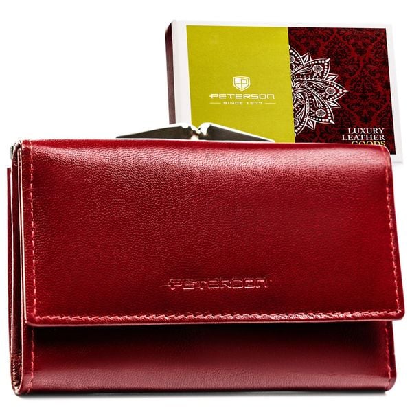 Mały portfel damski ze skóry naturalnej w czerwonym kolorze – Peterson