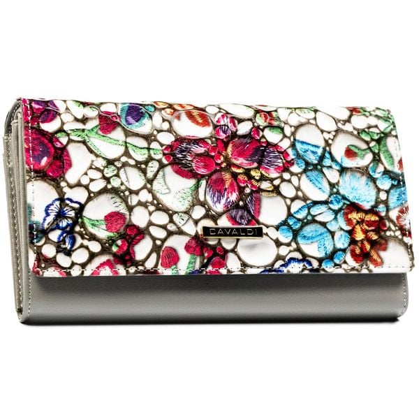 Skórzany, wielokolorowy portfel damski w kwiaty, wyposażony w system RFID – 4U Cavaldi