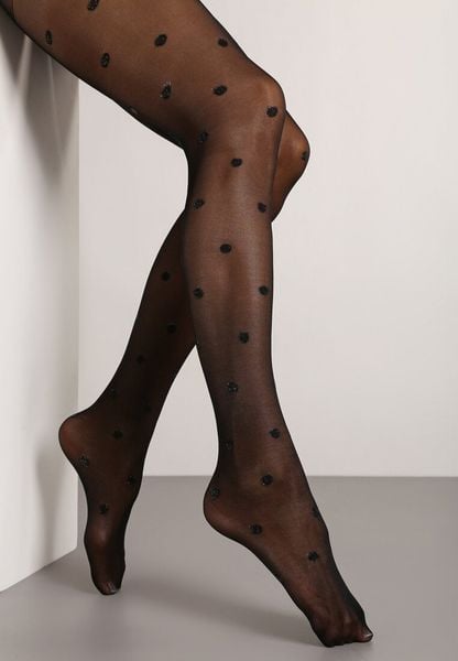 Czarne Rajstopy Ozdobione Wzorem w Kropki i Wstawką w Stylu Pończoch 20/40 Den Banatris