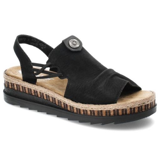 Czarne Sandały Rieker Wygodne Obuwie Damskie