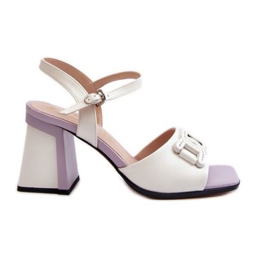 S.Barski Eleganckie Sandały Na Słupku Z Ozdobą Białe D&A MR38-156