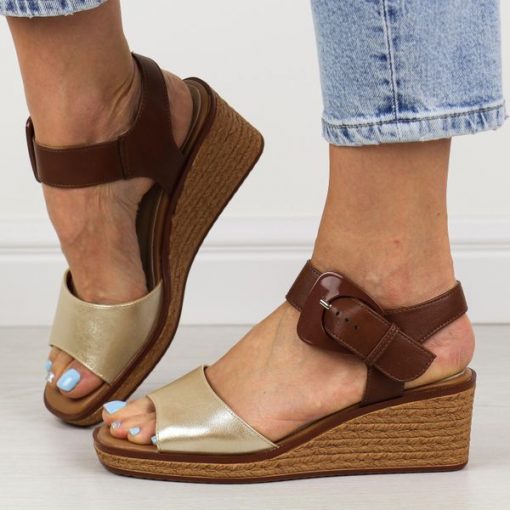 Złote sandały damskie na koturnie Sergio Leone sk302