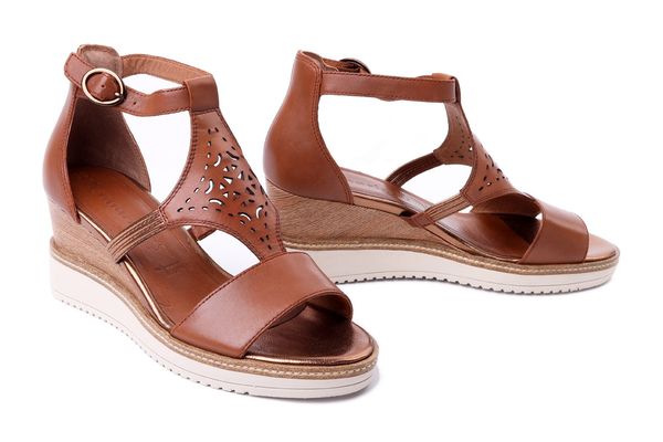 Sandały damskie. Naturalna skóra. Perforowana cholewka. Wkładka Tamaris Touch it. Zapięcie na klamerkę. Guma ściągająca. Wygodny koturn.