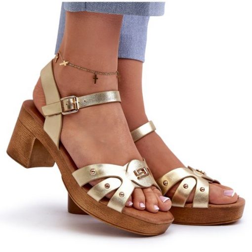 Sandały Damskie Na Obcasie Z Eko Skóry Złote Assames złoty