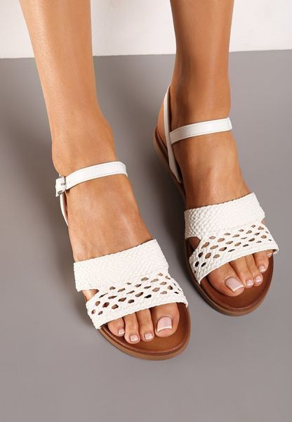 Białe Płaskie Sandały Zapinane na Sprzączkę Zundia
