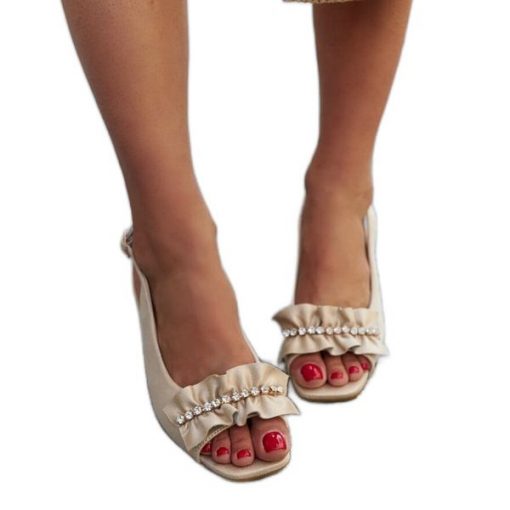 Sandały na słupku z ozdobną falbanką Mukaram beżowy