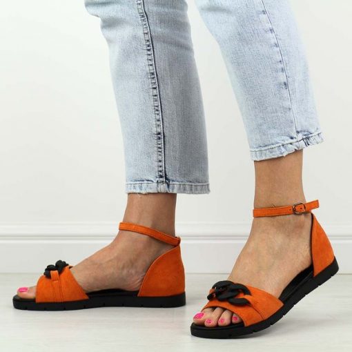 Pomarańczowe płaskie sandały damskie Vinceza 17320