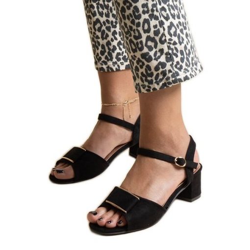 Czarne sandały na niskim słupku Frederica