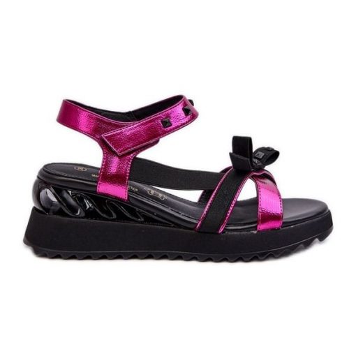 S.Barski Sandały Damskie Z Kokardką D&A CR956 Fuksja różowe