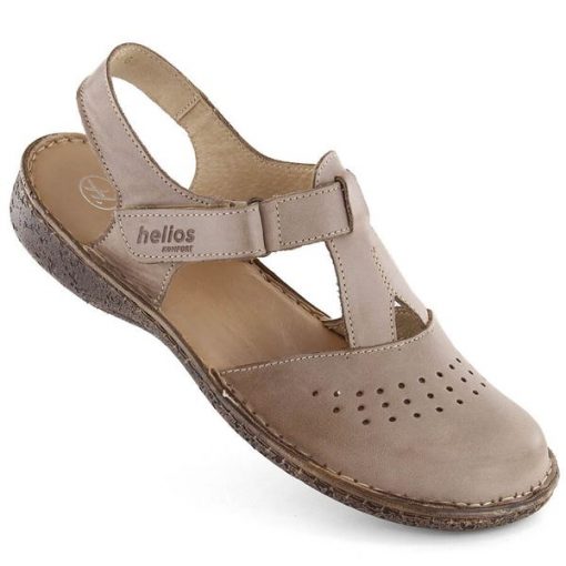 Oferowany model sandałów wyróżnia polska produkcja i niezwykły komfort w użytkowaniu. Obuwie na wygodnym podwyższeniu, posiada ciekawy kobiecy fason. Marka Helios zapewnia prawidłowe ułożenie stopy, swobodny przepływ powietrza i maksimum komfortu.