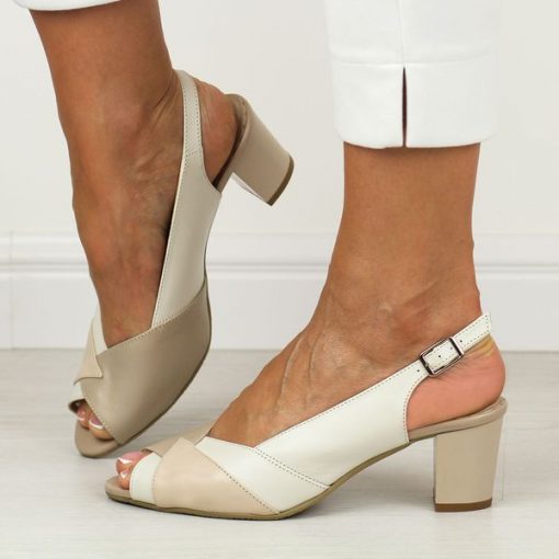 Beżowe skórzane Polskie sandały damskie na słupku Gregors 1074