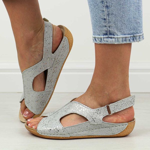 Srebrne skórzane Polskie sandały damskie Gregors 1079