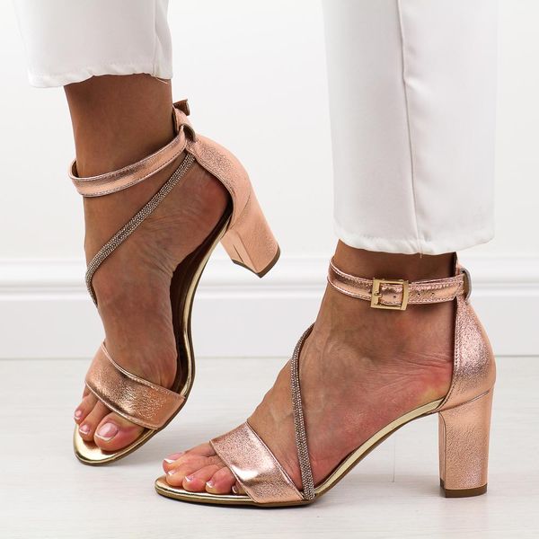 Szampańskie skórzane Polskie sandały damskie na słupku Prestige 2051