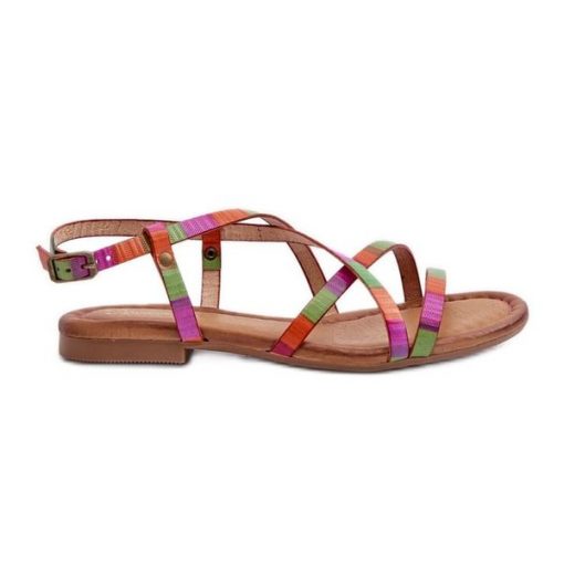 Płaskie Skórzane Sandały Damskie Maciejka 06635-39 Multikolor wielokolorowe
