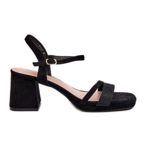 Damskie Sandały Na Obcasie Z Błyszczącym Paskiem Czarne Tessata
