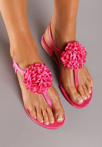 Fuksjowe Sandały w Stylu Japonek na Płaskiej Podeszwie z Kwiatem Gandrea