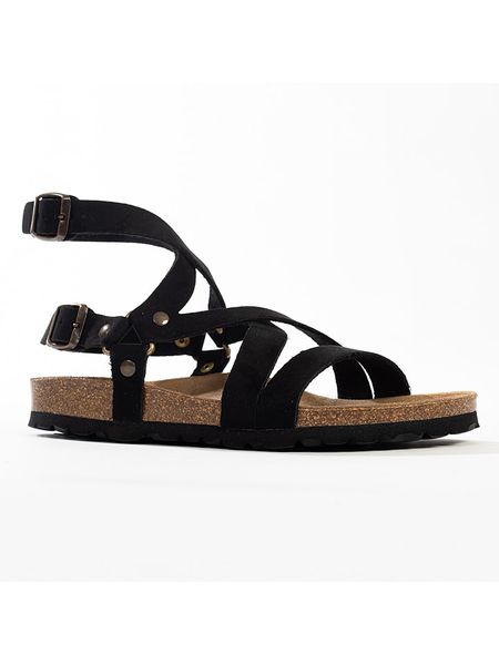 – materiał wierzchni ze skóry syntetycznej- zapięcie: sprzączka- noski: otwarte- skórzana wkładka: ergonomicznie formowana- podeszwa: profilowana- wyprodukowano w Hiszpanii