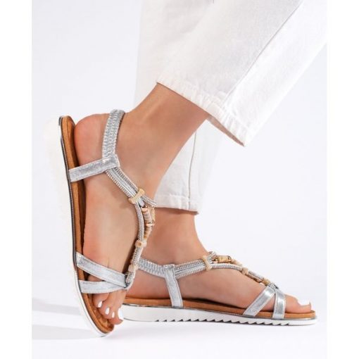 Srebrne sandały płaskie z koralikami srebrny. Sprawdź na butymodne.pl! Inna marka Sandały damskie w świetnej cenie. Promocje oraz darmowa dostawa.