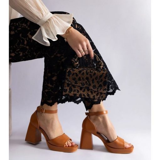 Brązowe sandały damskie na masywnym obcasie