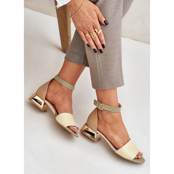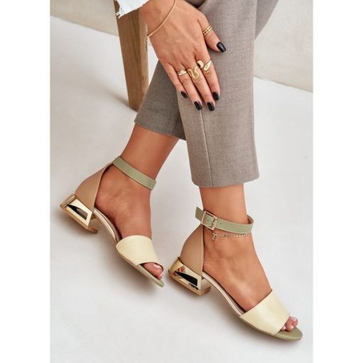 Skórzane Sandały Na Złotym Obcasie Laura Messi 2143 Beżowe beżowy