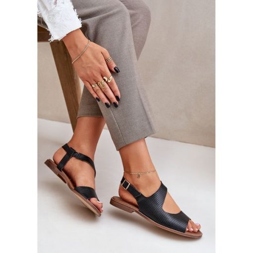 Lewski Shoes Skórzane Sandały Na Sprzączkę Z Tłoczeniem Lewski 3041 Czarne