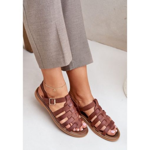 Skórzane Sandały Na Płaskim Obcasie Zazoo 3686 Brązowe