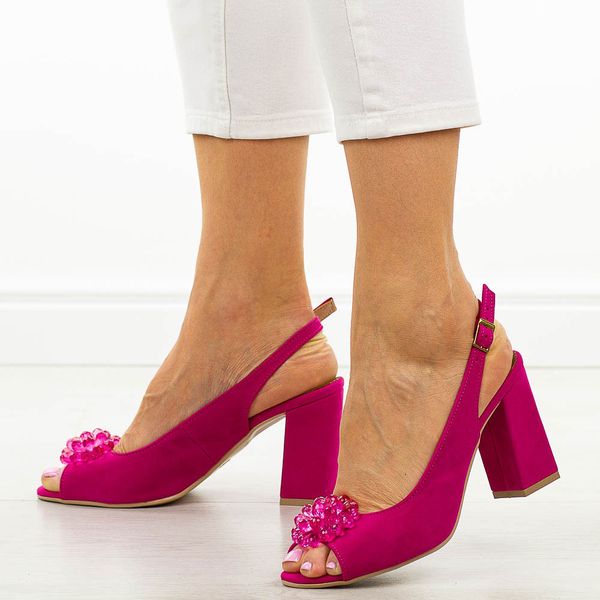 Fuksja zamszowe Polskie sandały damskie na słupku Deoni D219A