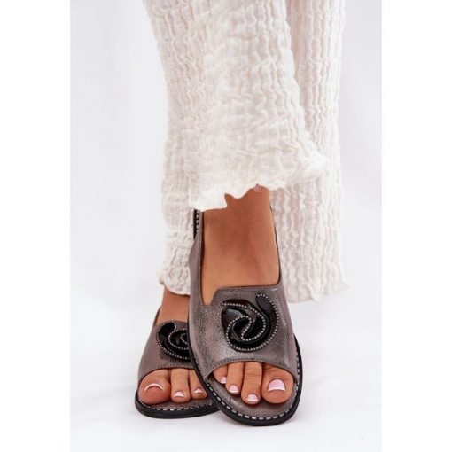 Połyskujące Sandały Damskie Z Ozdobą S.Barski KV51-006 Szare