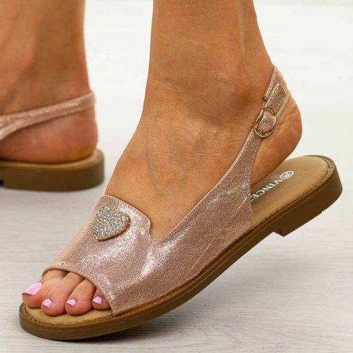 Złote płaski sandały damskie Vinceza 17384