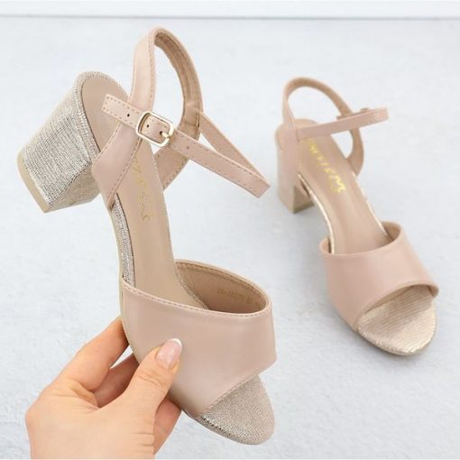 Sandały damskie na słupku beżowe Vinceza 20275 beżowy