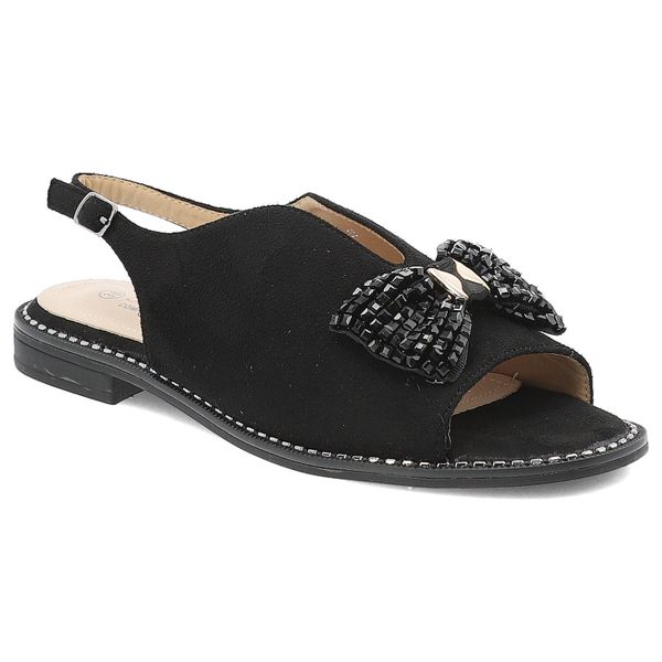 Czarne Sandały S.Barski Stylowe Obuwie Damskie Z Kokardką