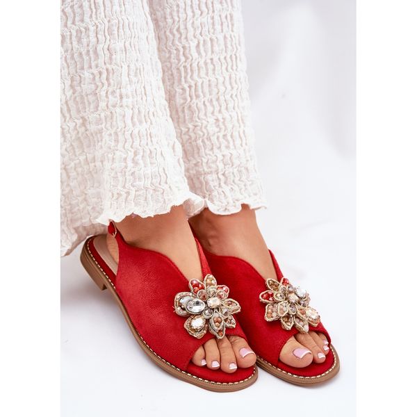 Sandały Damskie Na Płaskim Obcasie Z Ozdobą S.Barski KV27-001 Czerwone