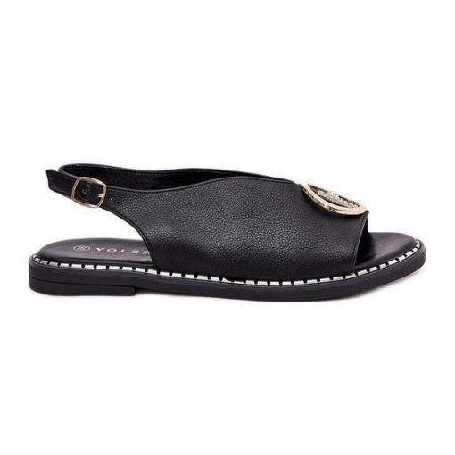 Płaskie Eleganckie Sandały Z Ozdobą Czarne