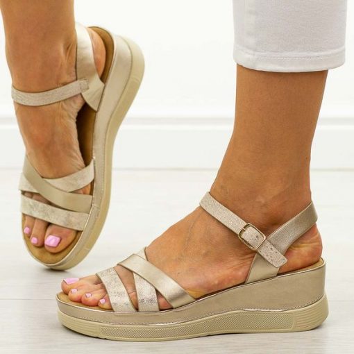Beżowe sandały damskie na koturnie Vinceza 17358