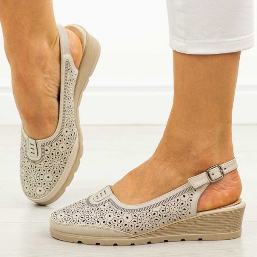 Beżowe sandały damskie na koturnie Vinceza 85166