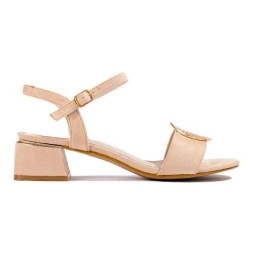 Damskie beżowe zamszowe sandały na niskim obcasie beżowy