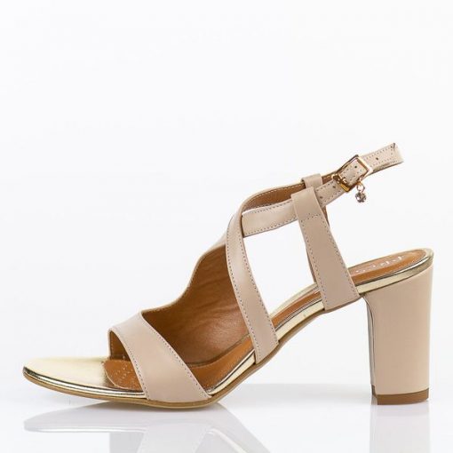 Beżowe skórzane Polskie sandały damskie na słupku Prestige 2094