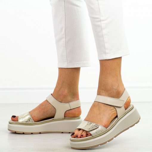 Złote skórzane sandały damskie S.Barski 543