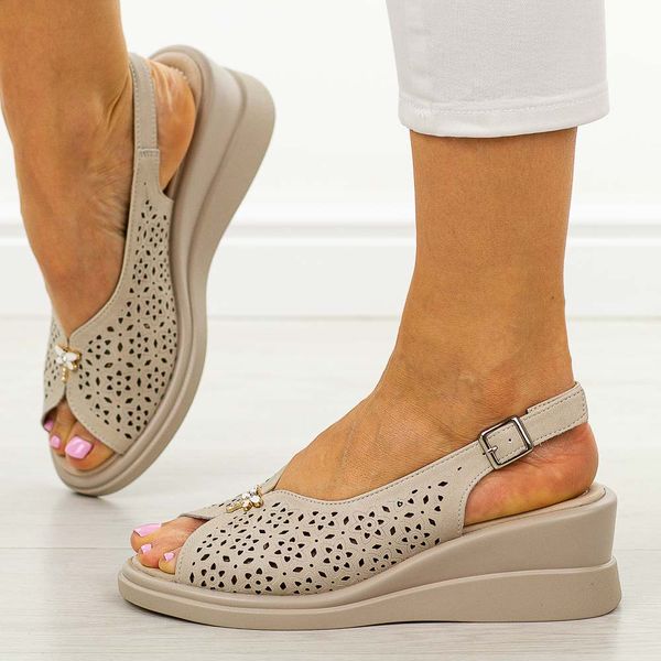 Beżowe ażurowe sandały damskie na koturnie Vinceza 79529